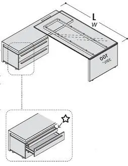 Стол с приставной тумбой, стеклянная столешница, левый 118985 882-020