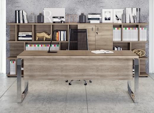 В элементный ряд серии включены предметы, необходимые для обустройства комфортного и функционального кабинета, любых размеров. Он состоит из переговорных столов, расширенной системы хранения состоящий из шкафов, тумб, стеллажей и т. д. Отдельно стоит отметить рабочий стол, так как он является украшением данной коллекции. Оригинальная конструкция письменного стола в виде сочетания древесной фактуры столешницы и металлических рам, выступающих в качестве опор, придает общему виду кабинета яркости и элегантности. На ваше усмотрение в коллекции доступны несколько вариантов размеров рабочих столов.