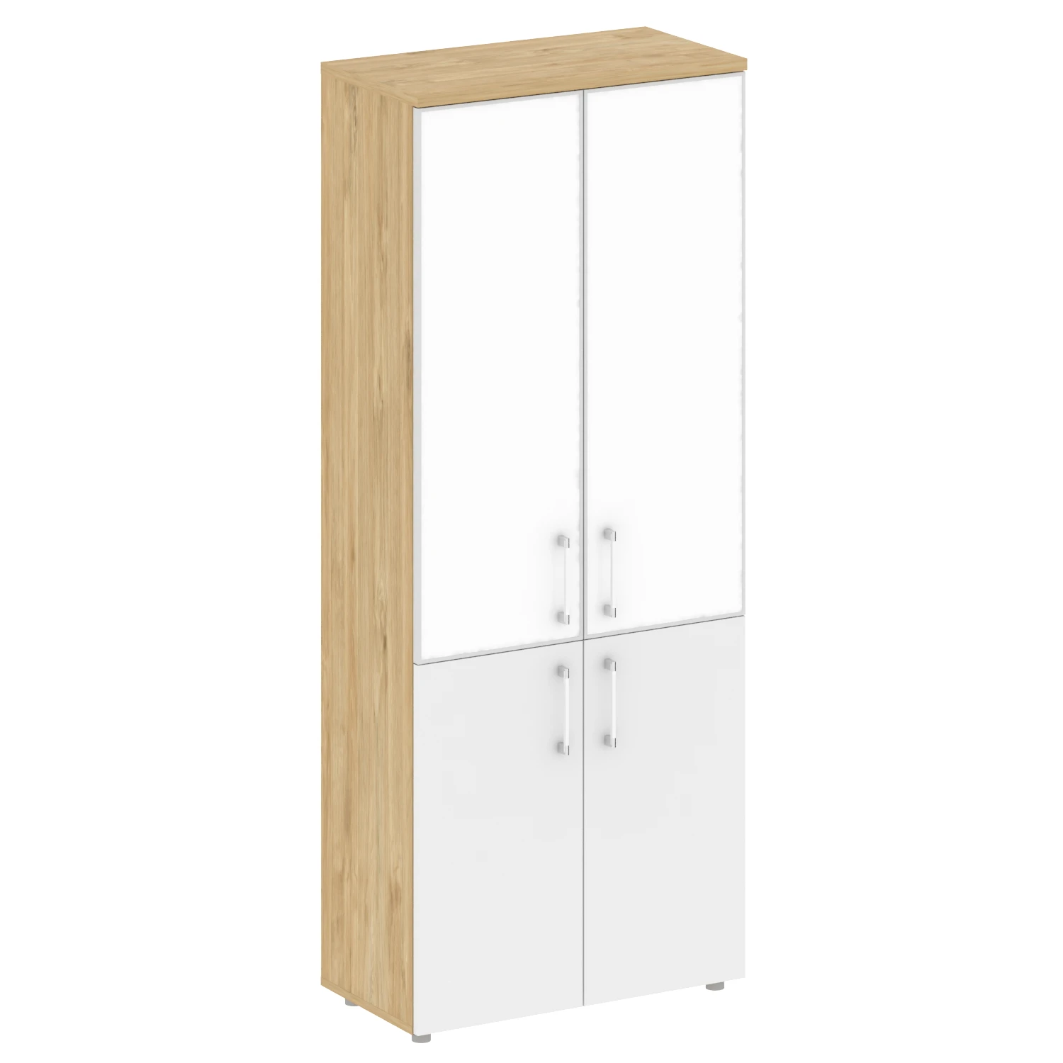 Шкаф высокий широкий (2 низких фасада ЛДСП + 2 средних фасада лакобель белый в раме) SK.ST-1.2R white 2111-029