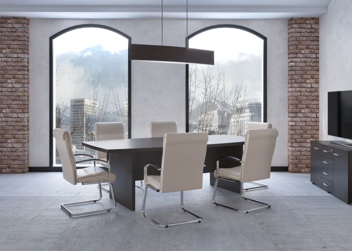 Она состоит из нескольких вариантов столов для руководителя способных увеличивать рабочую площадку за счет боковых брифингов. Не отходя от рабочего стола у вас, будет возможность проводить переговоры благодаря фронтальным брифингам. Помимо всевозможных рабочих и журнальных столов в коллекции Талант, также присутствуют несколько вариантов переговорных столов. Стеллажи разных размеров оснащены тонированными стеклянными дверями, декорированными алюминиевой рамой.