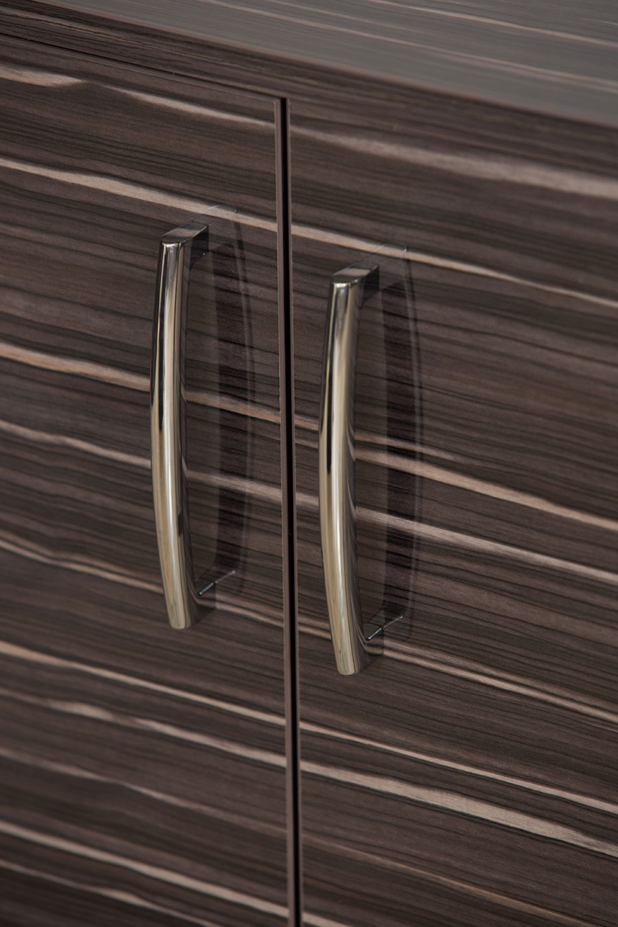 - Стеклянные двери – 4 мм закаленное стекло цвета "графит" в раме из 19 мм MDF; глухие двери - 18 мм ДСП
