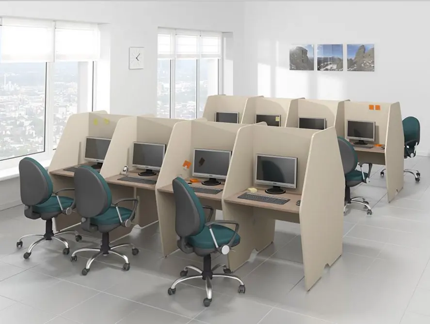 - Во-вторых, экономия пространства. Элементы мебели для персонала Call-центра изготавливались с учетом минимальных параметров помещения. Расположив рабочие зоны друг против друга, вы сэкономите довольно приличное офисное пространство.
