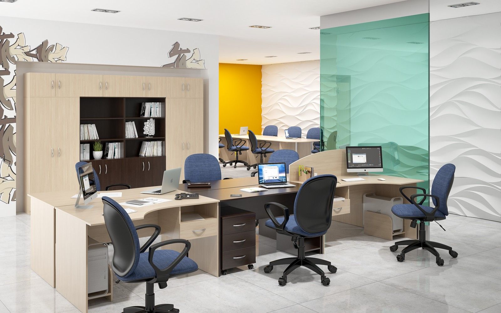 Организовать рабочее пространство для рядовых сотрудников по доступной цене вполне возможно. Для этого достаточно выбрать необходимые элементы или целый комплект мебели для персонала Симпл. Эта серия представлена по низкой цене, потому что имеет ограниченный ассортимент. В ассортимент офисной мебели Simple отсутствует большое разнообразие столов, шкафов и гардеробов. Но это никак не влияет на возможность комфортабельно обустроить рабочее место. Кроме того, их дизайн позволяет создавать как единичное офисное пространство, так и рабочие станции для нескольких сотрудников.