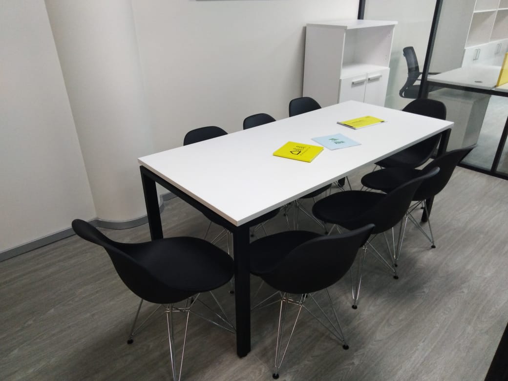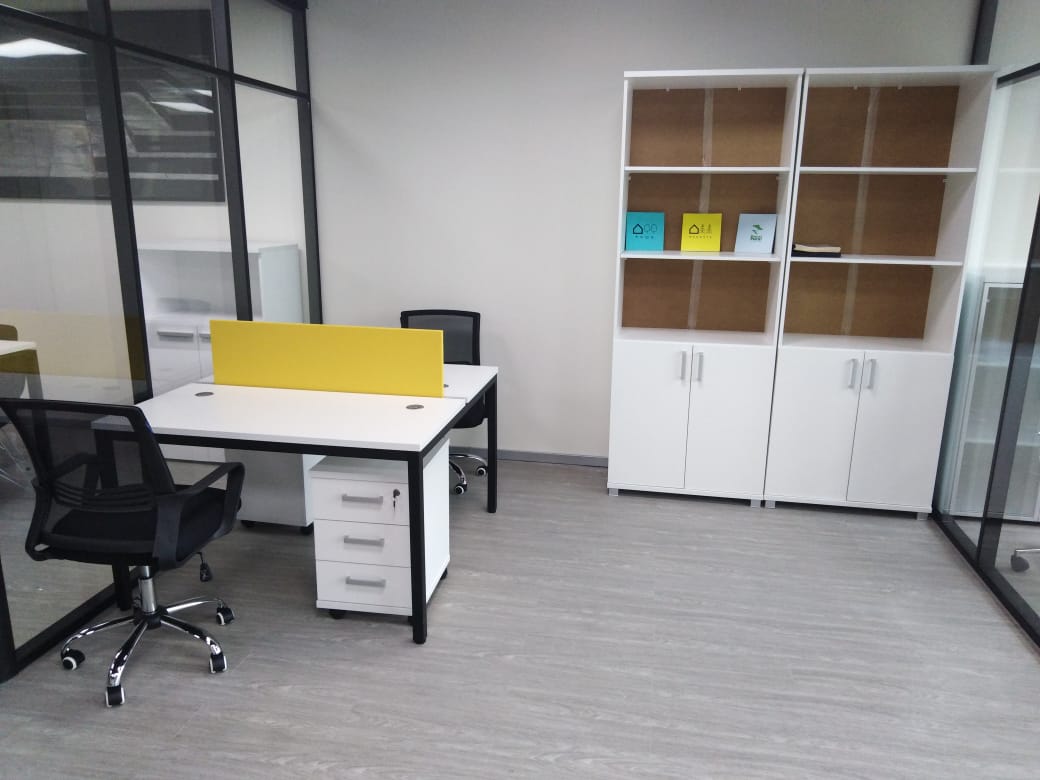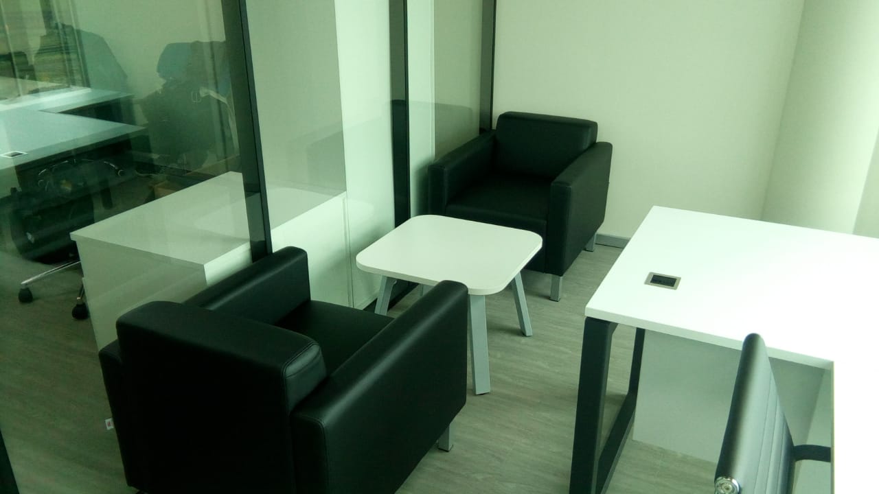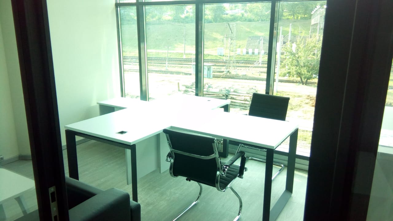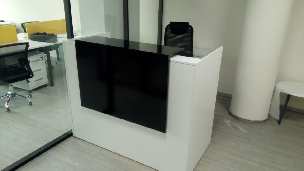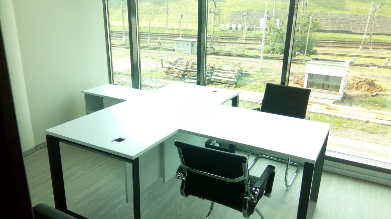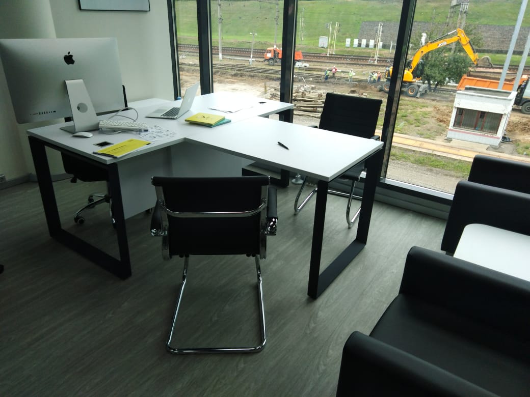 Сотрудники "Альфа-М" предложили интерьер в чёрно-белом цвете. Мы использовали кабинет руководителя Onix Direct, мебель для переговорной комнаты Gloss из антрацита и металла. Однако такой дизайн нам показался немного скучным, и мы предложили добавить яркие акцент в виде мебели для персонала с лимонными экранами из серии Avance. В холле расположилась стойка ресепшен Lounge с подсветкой, диваны и кресла для посетителей "Горизонт" и "Евро" соответственно от фабрики Евроформа. И финальным штрихом стали журнальный стол GDB. В целом, дизайн получился лаконичным, но с лимонной изюминкой.