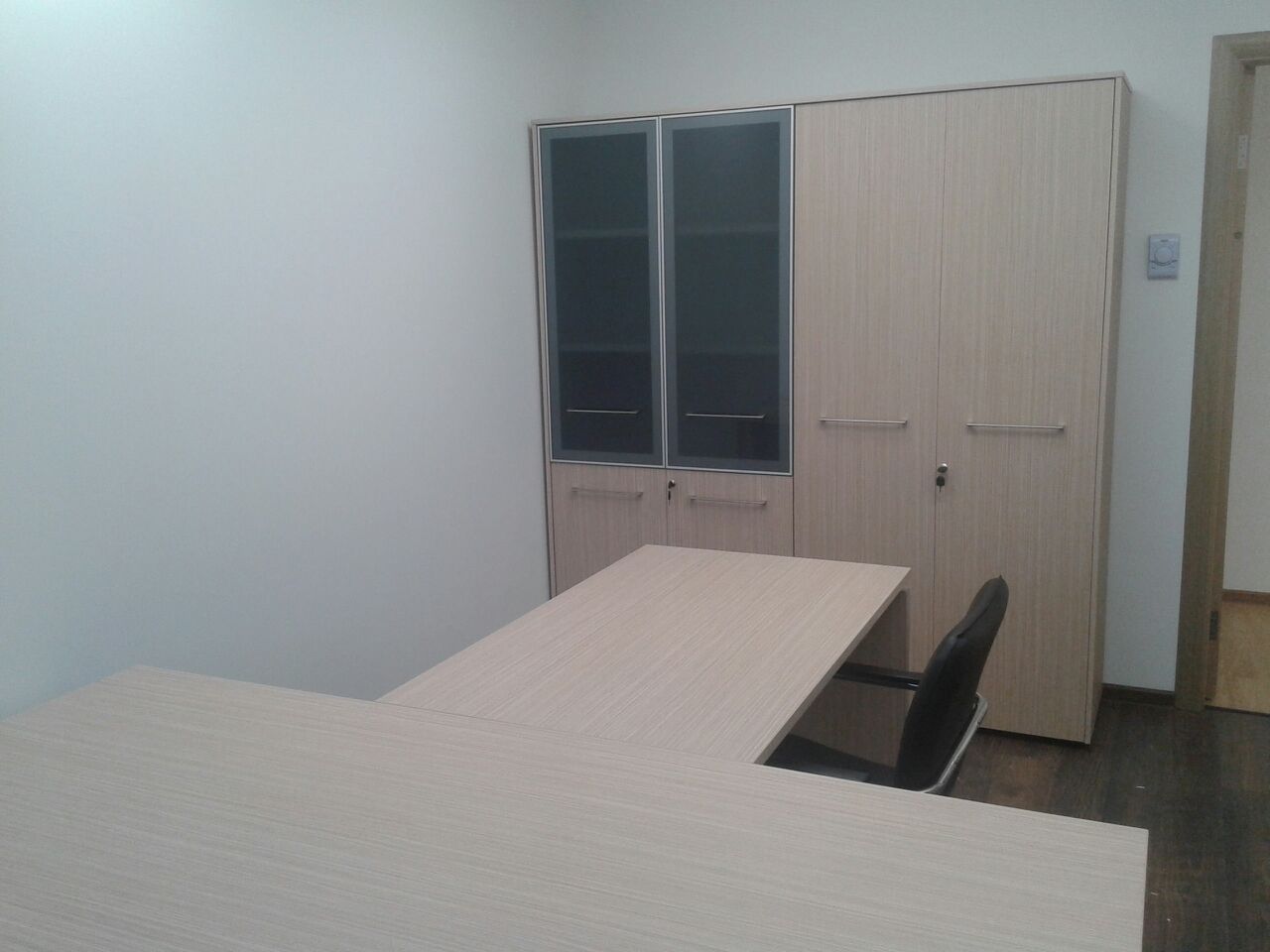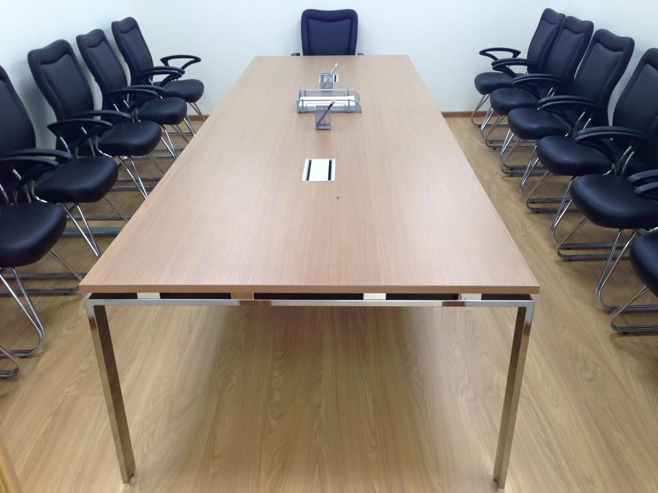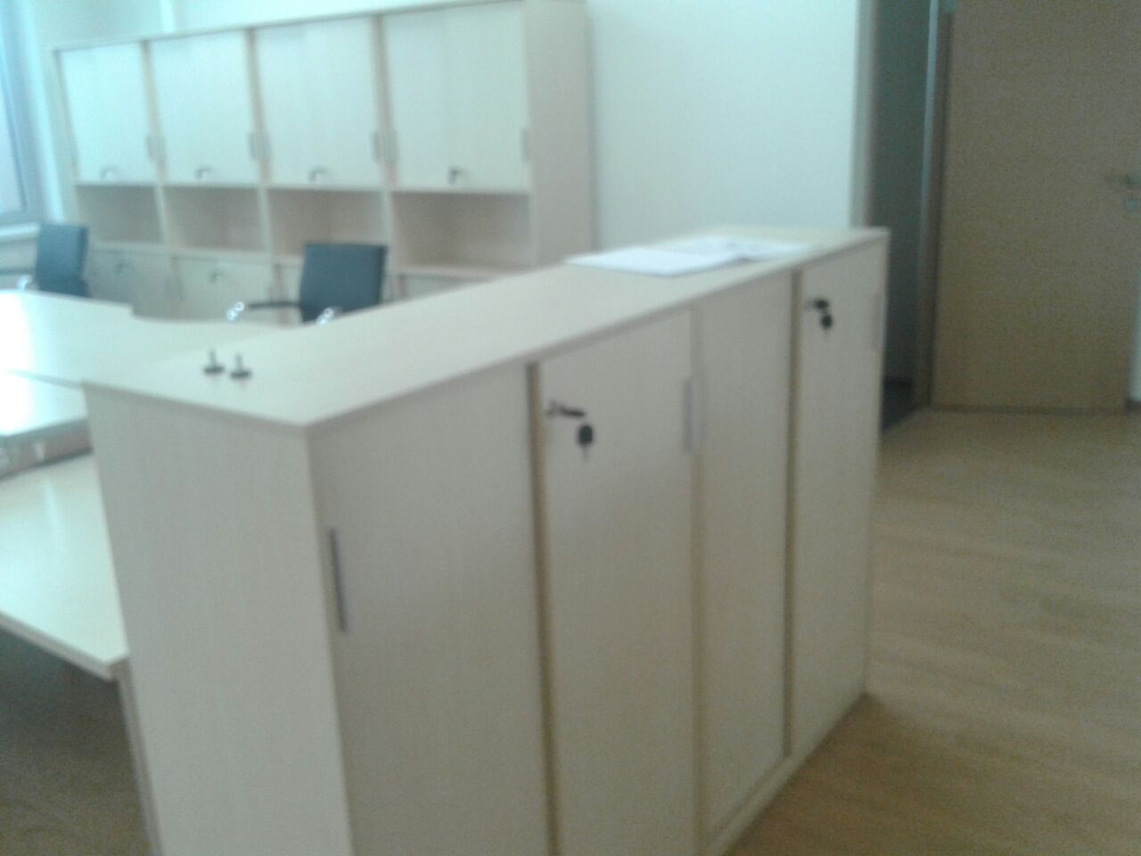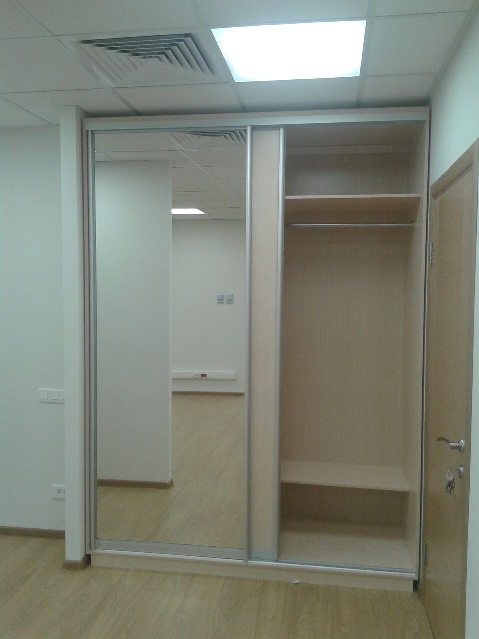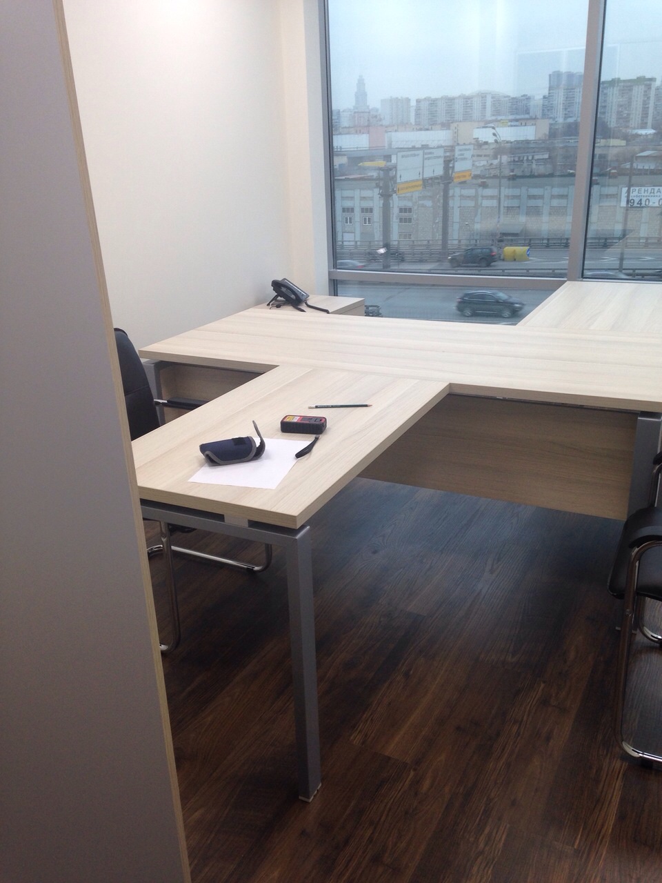 50 рабочих мест серия Periscop Orgspase. Цвет клен, опоры хром,шкафы купе для одежды,кабинет Flash выбеленный дуб.