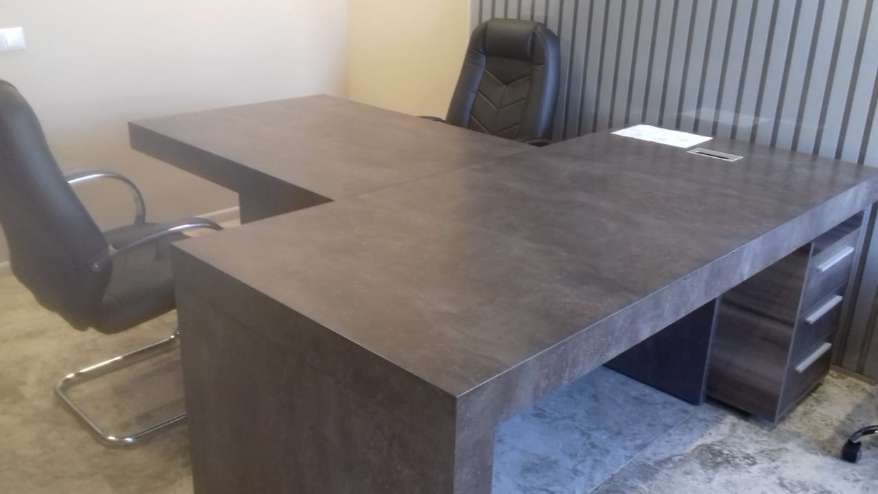 В проекте использована мебель для кабинета руководителя B-Tone в цвете вяз/бетон темный