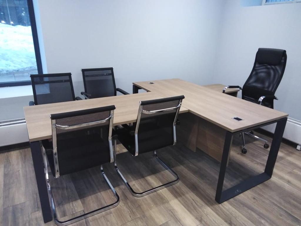 Рабочий стол в цвете Дуб Аризона на О-образом металлокаркасе оттенка Антрацит из коллекции Onix производится российской фабрикой Рива. Кресла для посетителей так же от фабрики Рива. Кресла для руководителей модели КВ-9 от компании Бюрократ отличаются повышенным комфортом за счет удобной эргономичной спинки. При изготовлении этих изделий используются только качественные материалы и новейшие технологии. Тонкие и лаконичные линии позволяют полностью сосредоточиться на работе, не отвлекаясь на лишний декор.