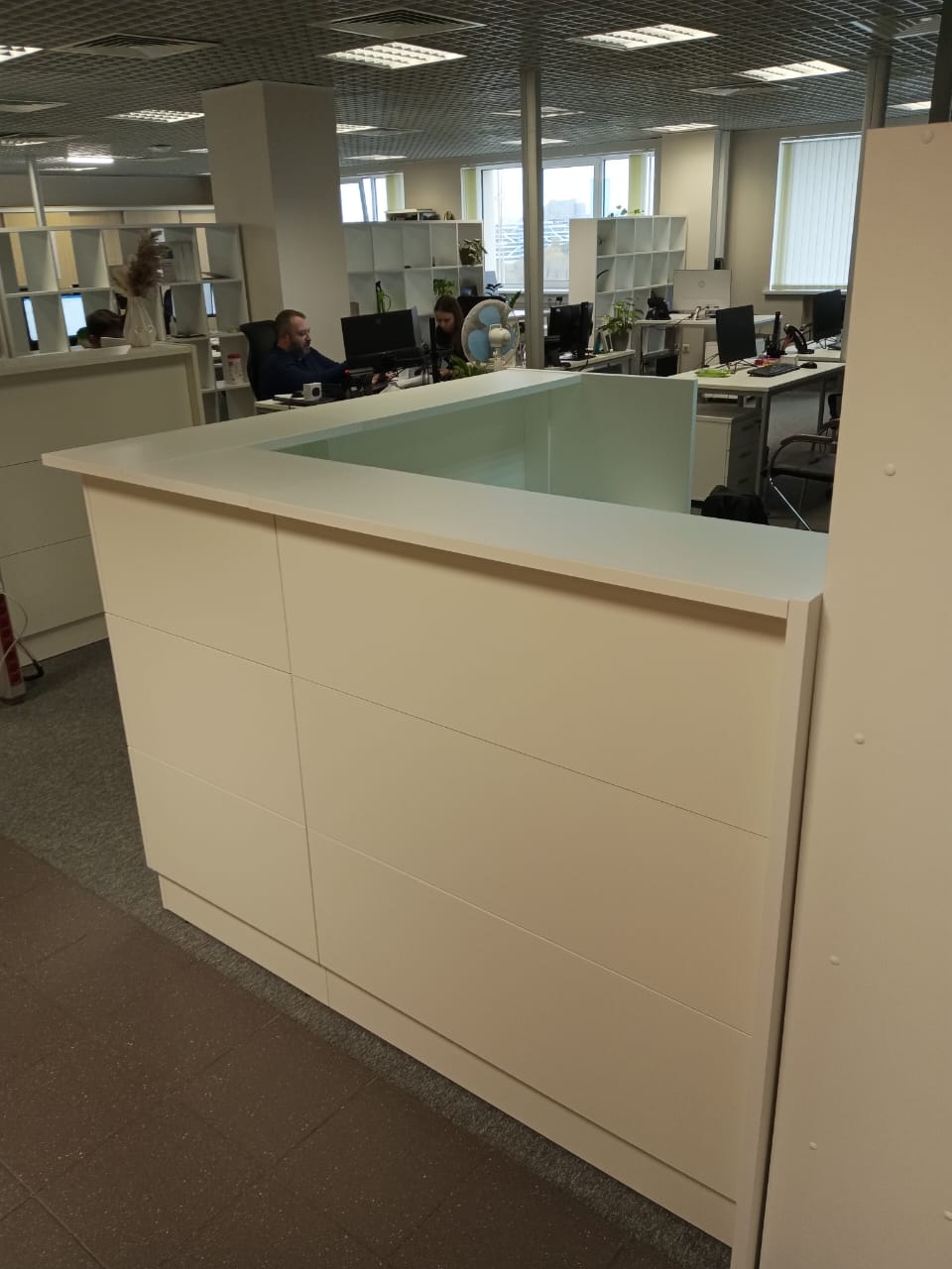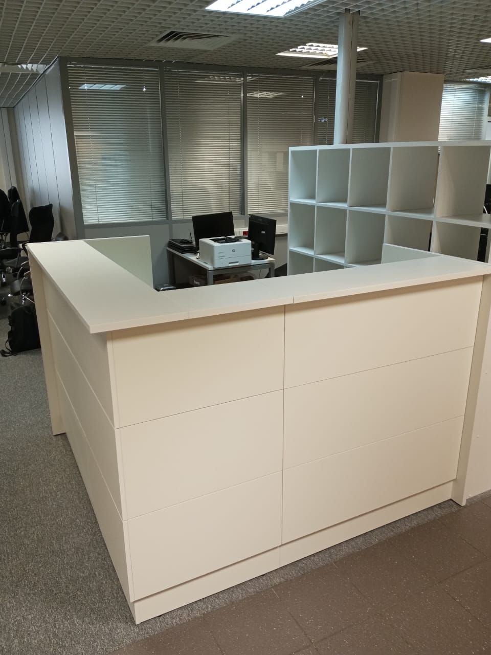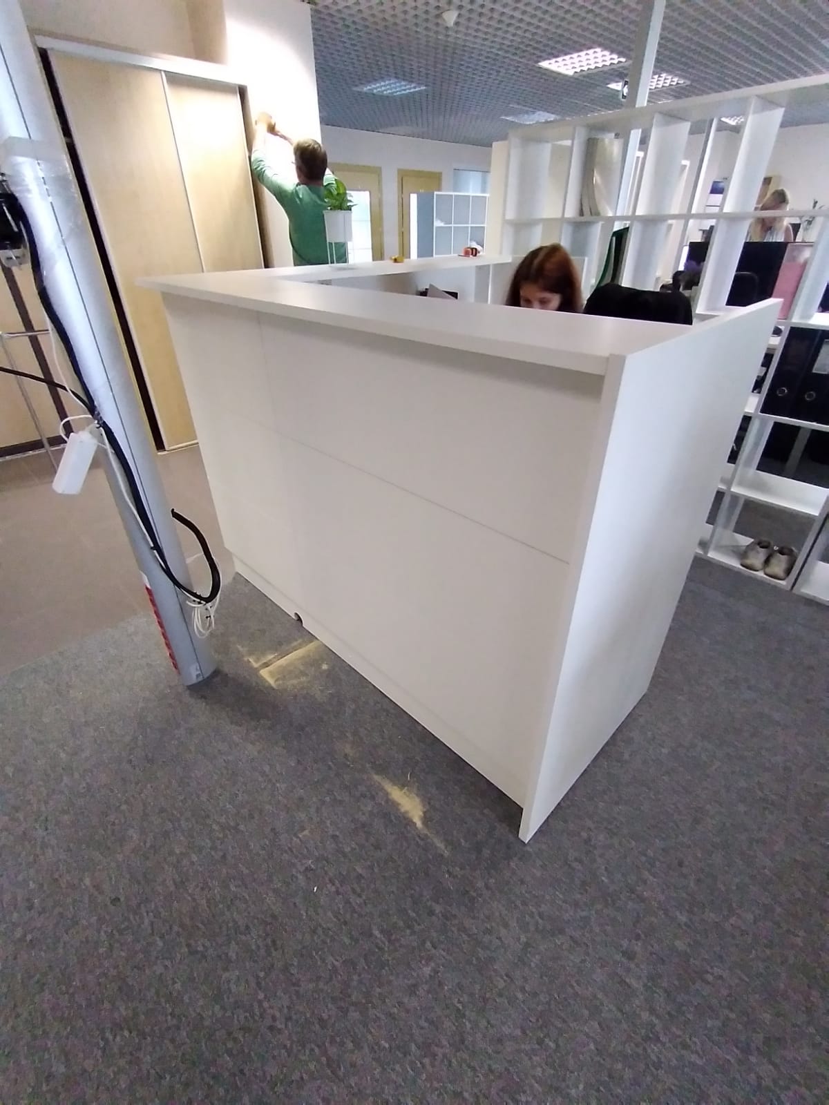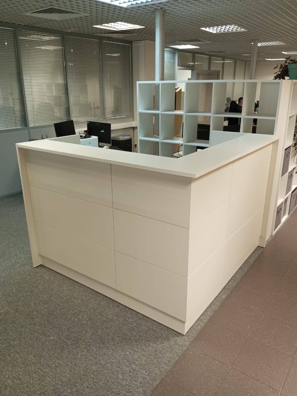 В проекте использованы стойки-ресепшен Steel белого цвета.
