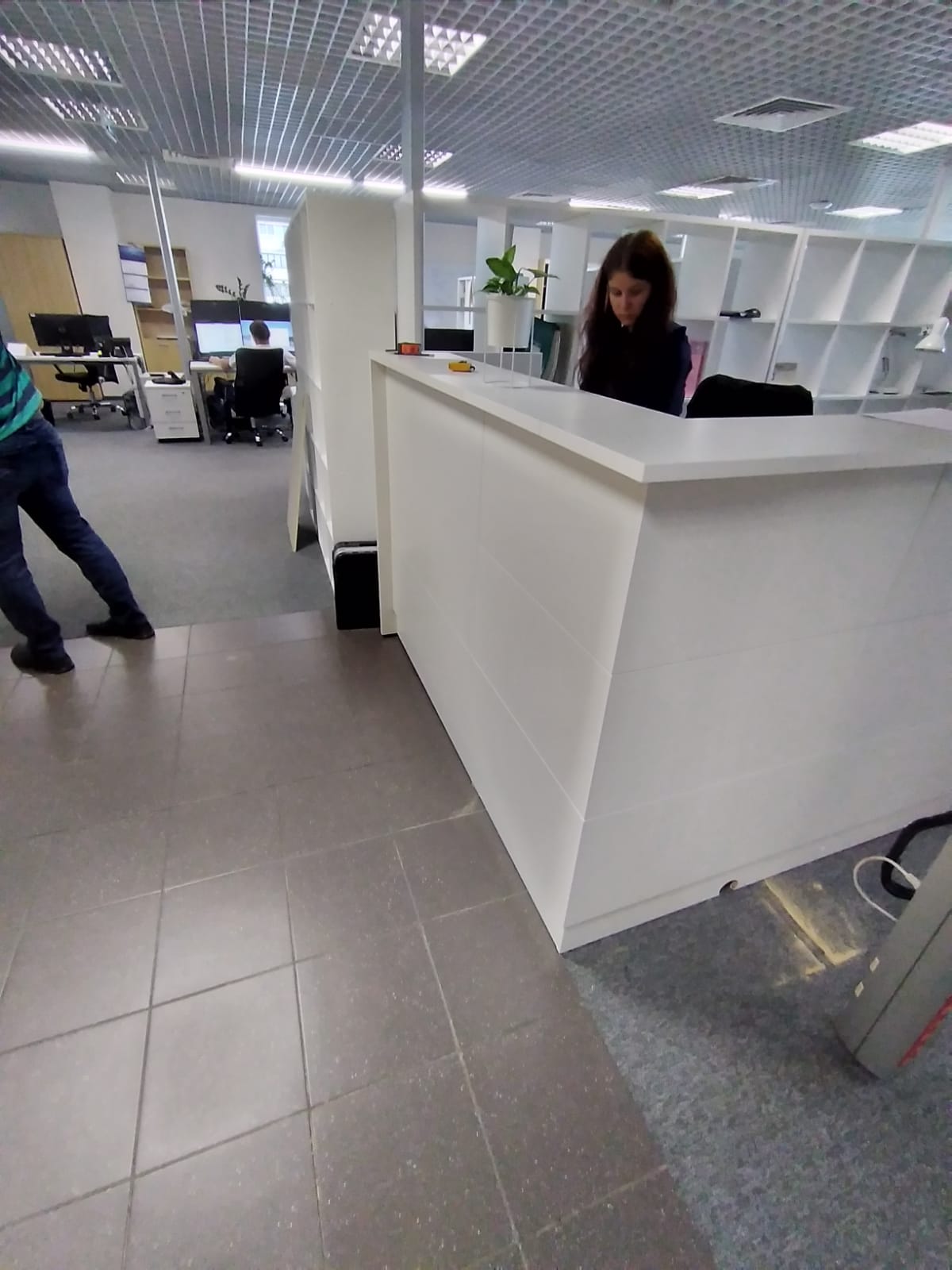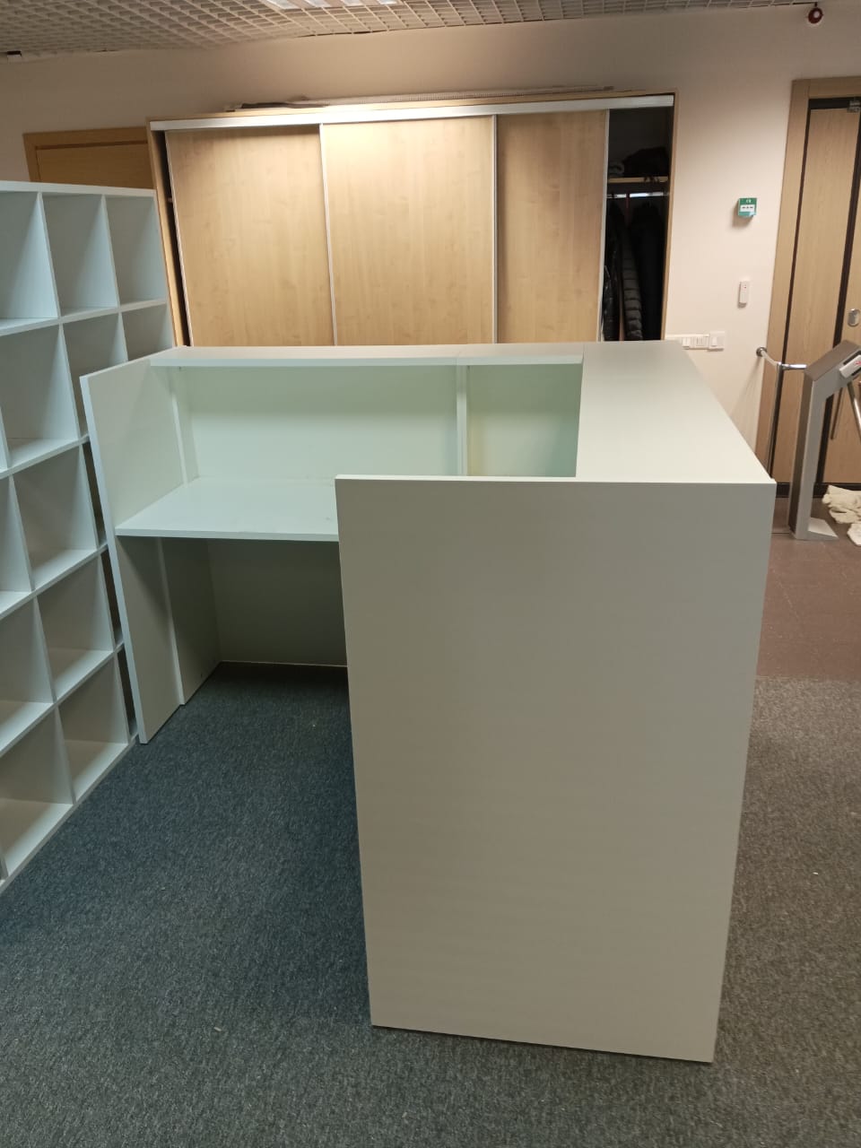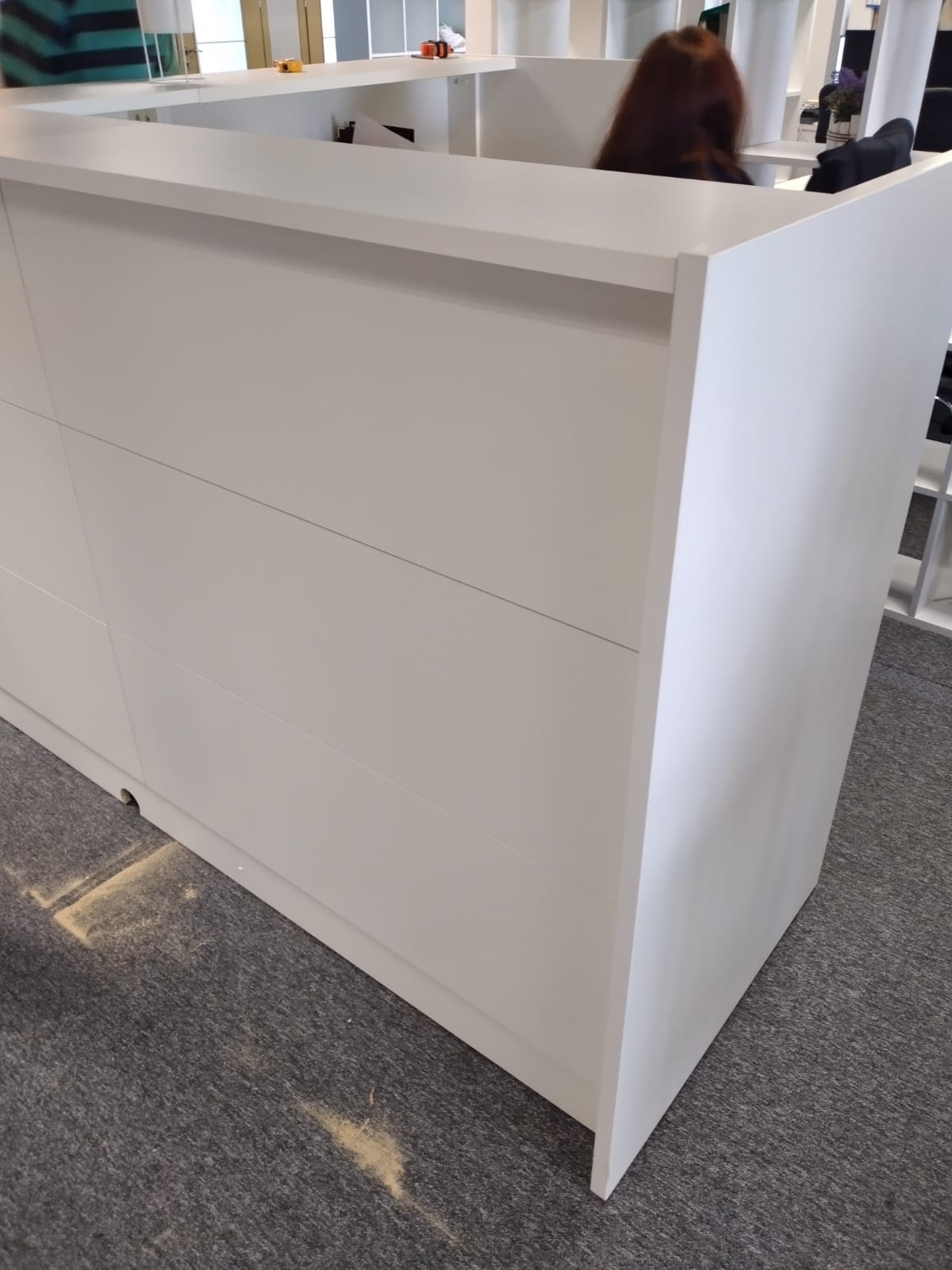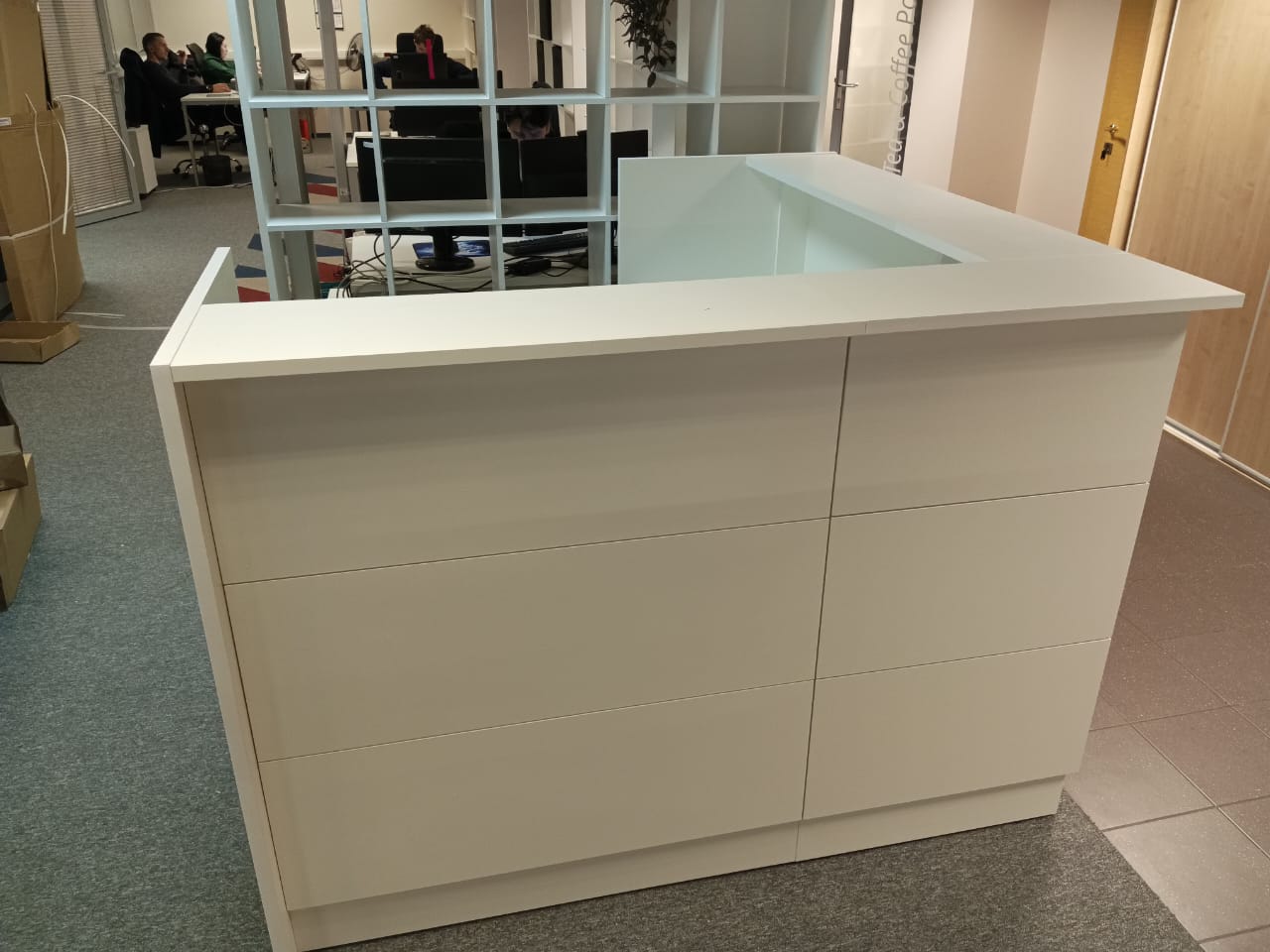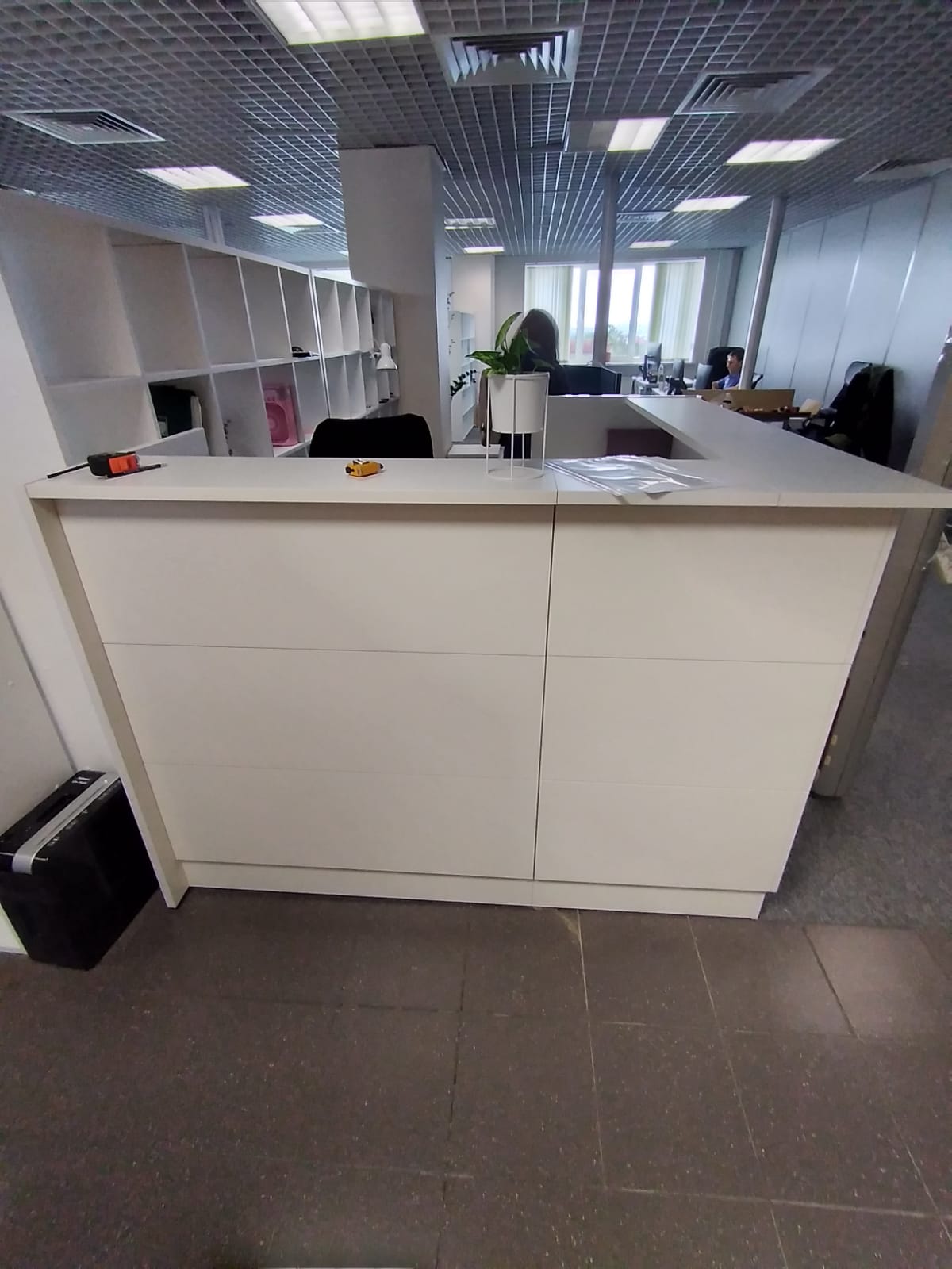В проекте использованы стойки-ресепшен Steel белого цвета.