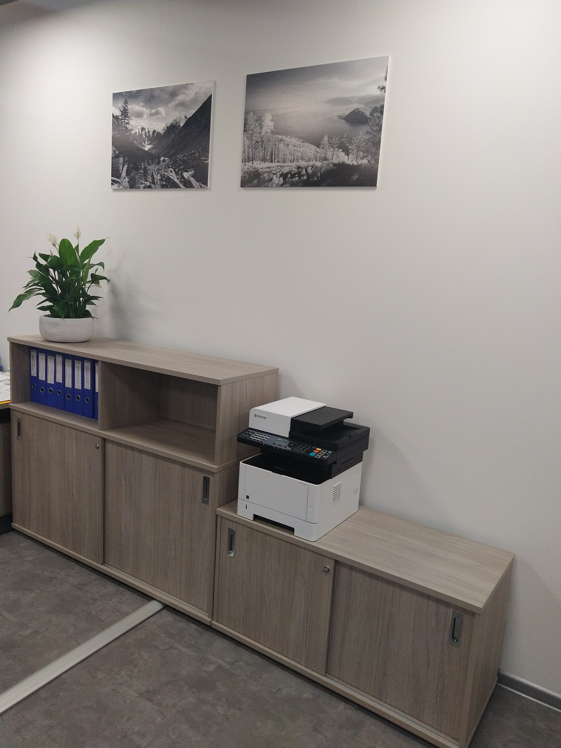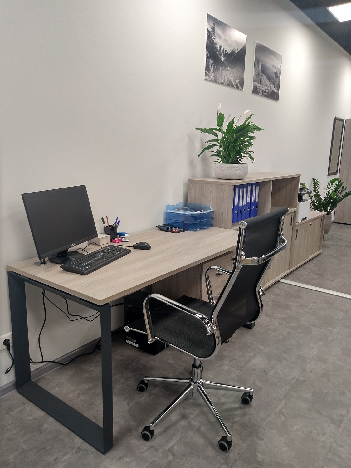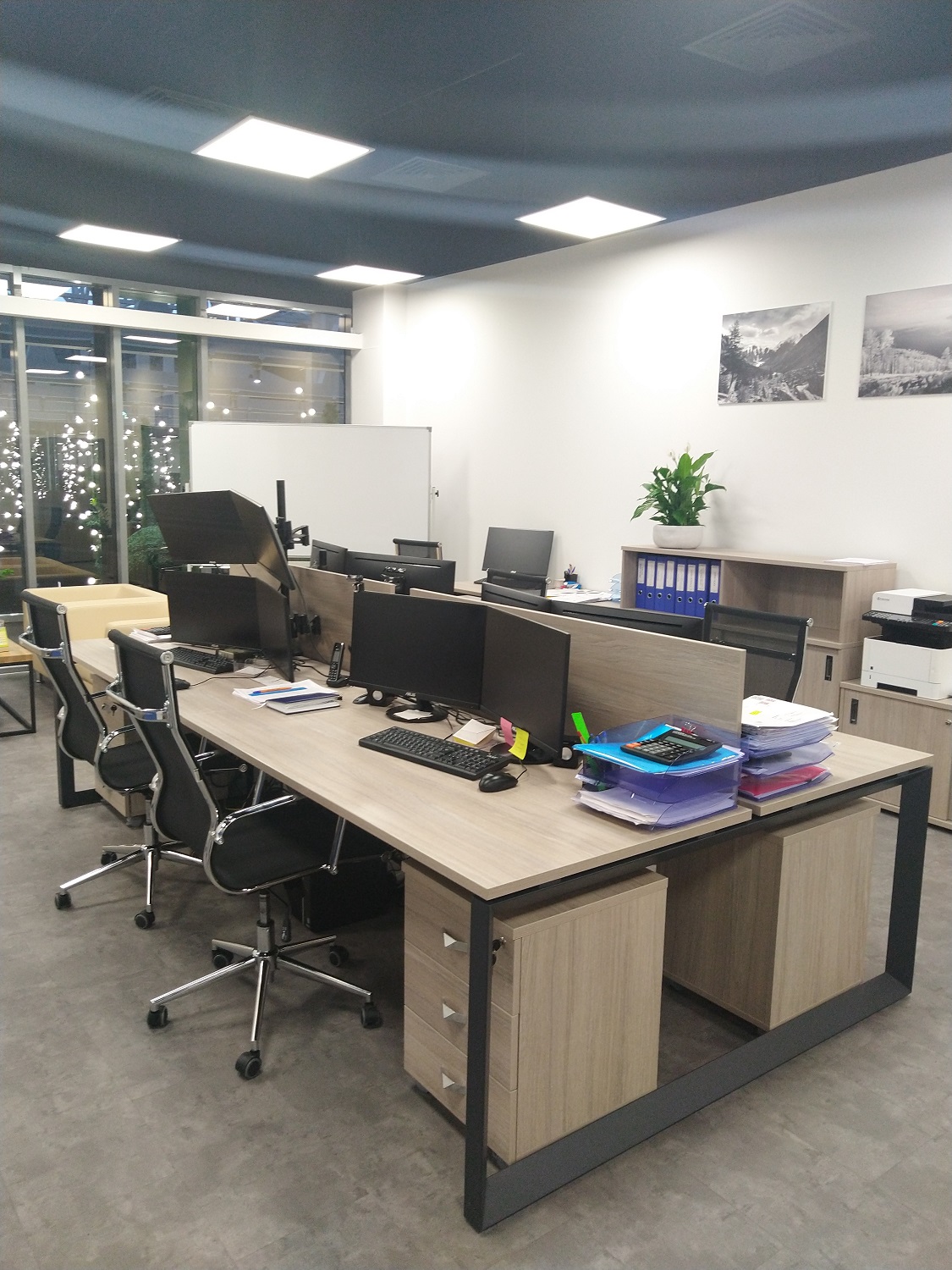 Для обустройства рабочих мест сотрудников данной компании мы выбрали элементы из серииONIX и RIVA. На первый взгляд, может показаться, что данные модели мало чем схожи, но, когда все было собрано, вся картина нашей задумки прояснилась. Элементы серии отлично дополняли друг друга. Были выбраны такие элементы, как различные вариации столов, тумбы, шкафы, стеллажи, комоды и так далее. Дополнили рабочие места мы с помощью кресел для персонала серии Opera от фабрики Everprof.