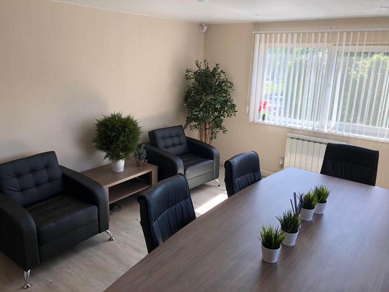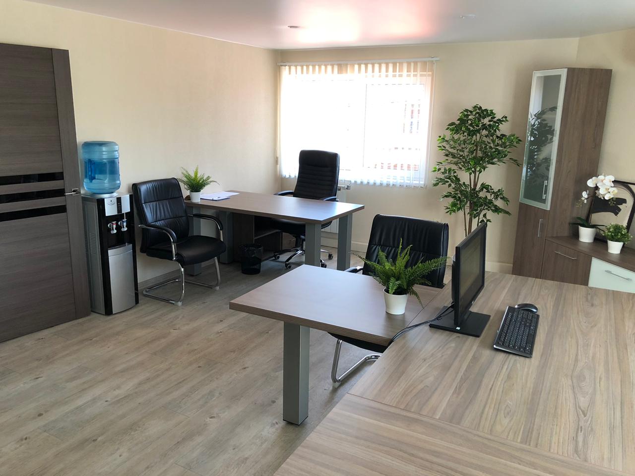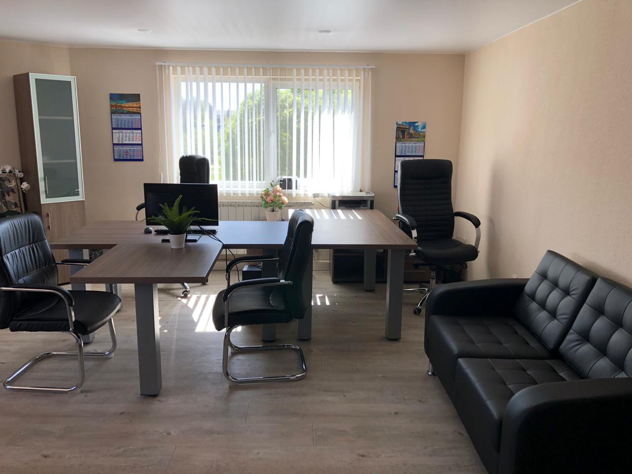 Для данной компании мы выбрали деревянную мебель в холодном оттенке с металлическим основанием. Для кабинета руководителя и переговорной мы отгрузили и собрали мебель серии Ялта. Дополнили дизайн помещения с помощью кресел Тайпит. В зоне ожидания расположились кресла для клиентов и кожаные диваны в коричневом цвете Рольф от фабрики Евроформа.