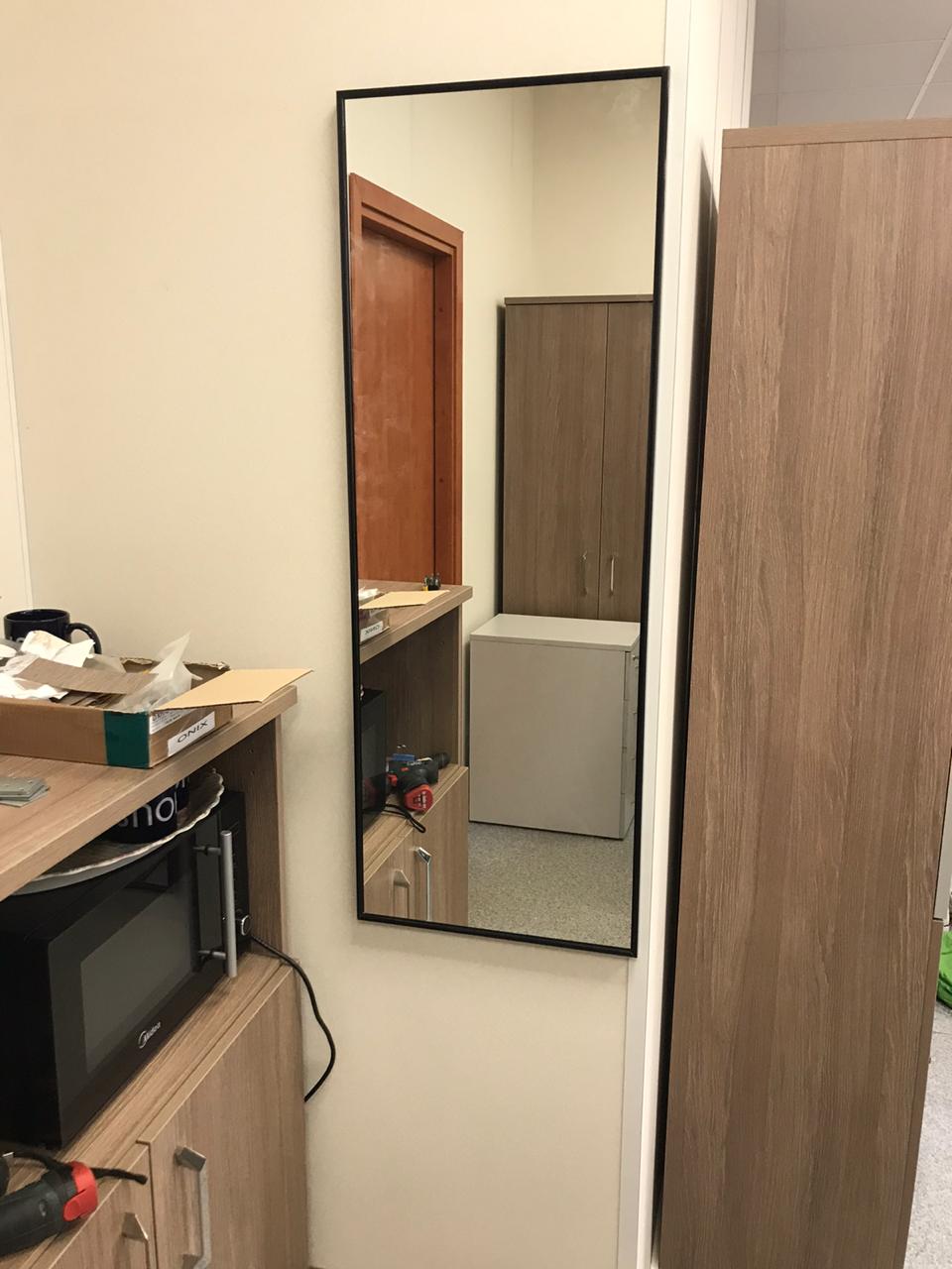 После звонка от руководства данной фирмы мы принялись за поиски подходящего комплекта. Отдать предпочтение одной серии мы не смогли, поэтому скомпоновали сразу из нескольких. За основу мы взяли элементы из мебели для персонала Onix и кабинета руководителя Yalta, в оттенке Дуб Аризона и Вяз благородный соответственно. Эти два оттенка очень похожи друг на друга по фактуре, а вот по окрасу создают прекрасные контрастный тандем. Помимо этого, мы также использовали кресло BOND TM EVERPROF, зеркало настенное в раме Сельетта-6, черн.(1100Х400Х9). Для зоны хранения мы выбрали шкафы-купе из коллекции Maris. Все изделия были в нестандартном размере.