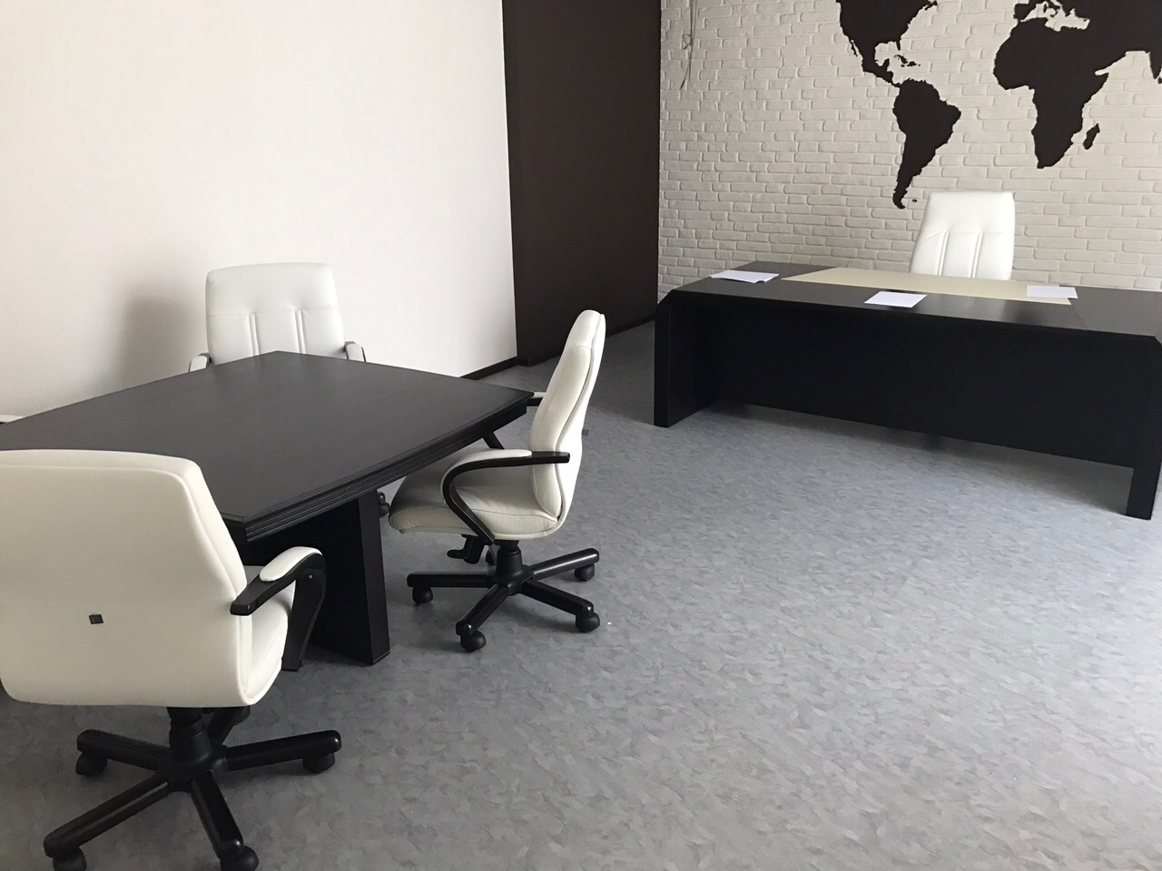 Кабинет руководителя компании ООО «СтройАктив» в черно-белом исполнении.