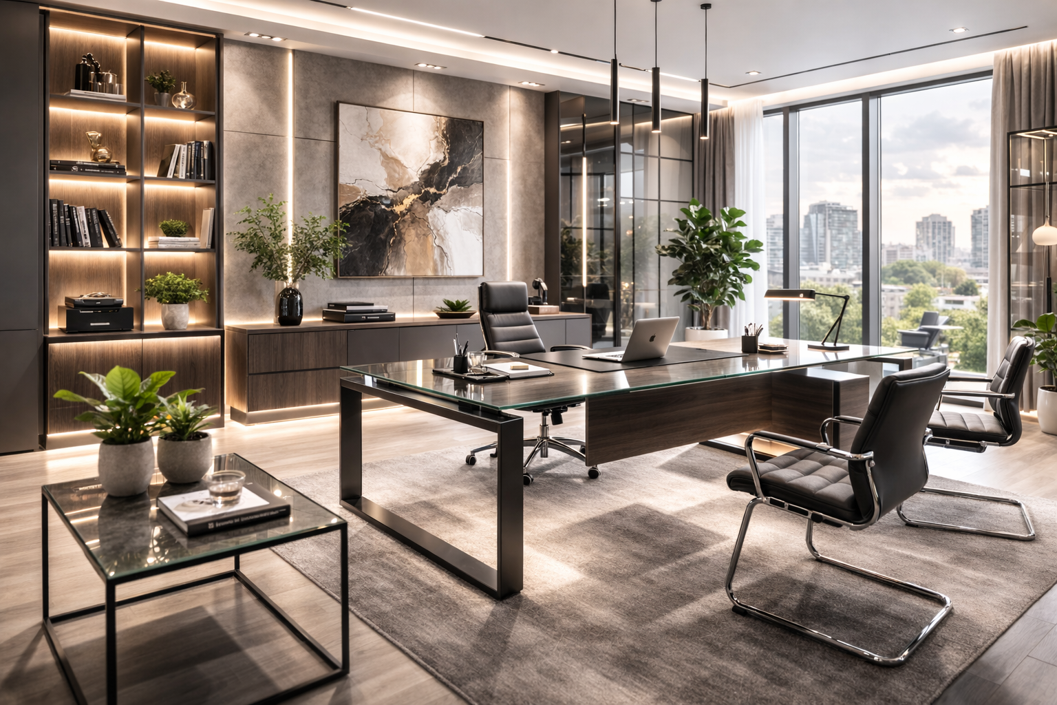 Массивные дубовые столы постепенно уступают место функциональному премиум-минимализму. В конце года мы зафиксировали повышенный интерес к сериям кабинетов руководителей в стилях хай-тек и модерн (например, линейки со стеклянными и металлическими элементами). Заказчики все чаще выбирают мебель, которая подчеркивает не только статус, но и прогрессивность мышления компании.